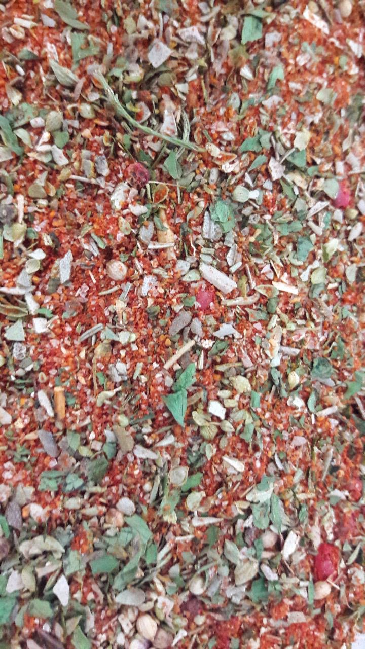 Composition : sel, paprika, origan, ail, coriandre concassée, romarin, persil, poivre de Sichuan, baie rose coriandre feuilles. persil, romarin, sel.