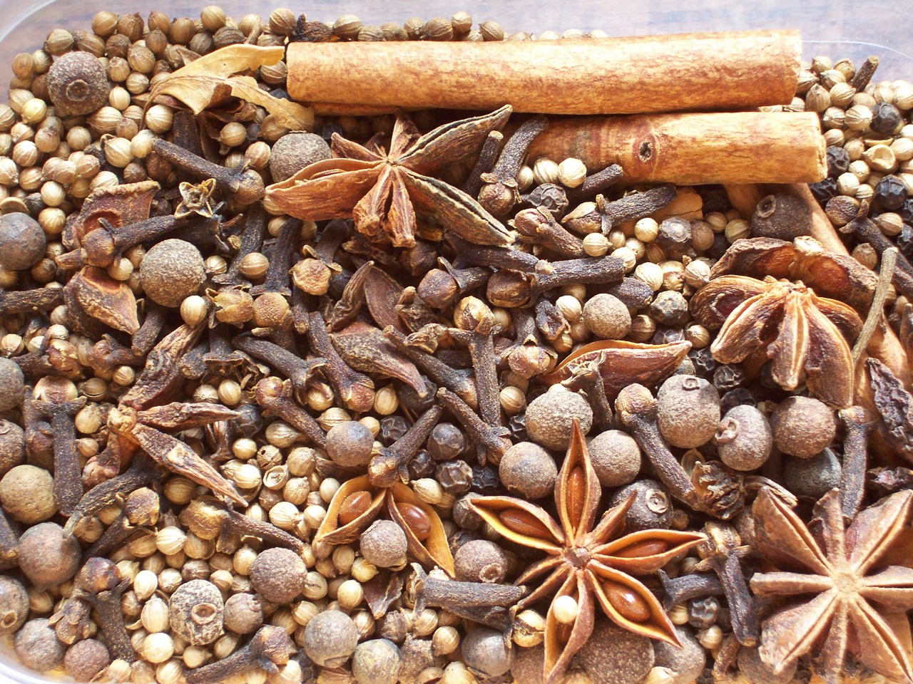 Composition : cannelle bâton, coriandre, badiane ou anis étoilée, clous de girofle, poivre noir, piment du Mexique.