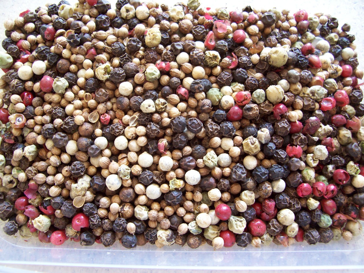 Composition : poivre blanc, coriandre, poivre noir, baie rose, poivre vert.